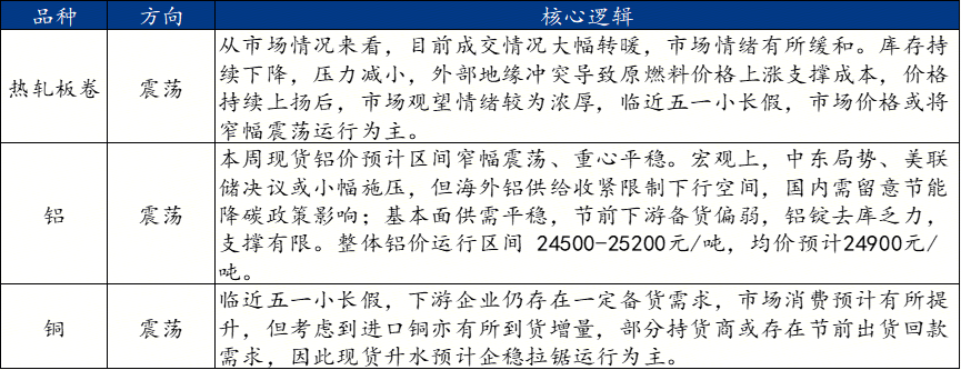 基本面,国内供应端运行平稳,需求端下游节前备货强度或较有限,五一节前铝锭或难有明显去库,基本面对市场支撑温和。