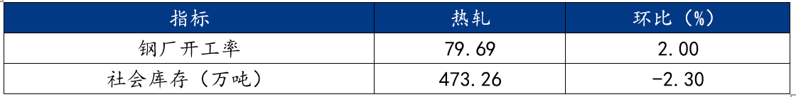 目前热卷供增需减,持续去库。热卷产量周环比增长3.10万吨至305.71万吨,热卷表需周环比减少0.62万吨至310.12万吨,热卷库存周环比减少4.41万吨至415.57万吨。