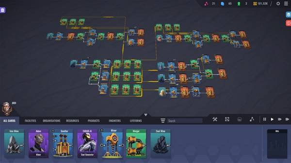 在游戏中,连接卡牌的方式以90°角为基础,系统会自动调整布局,但一处错误连接就可能会引起总系统停摆。这要求玩家在放置卡牌时,必须深思熟虑,确保固体、液体和电力的流通顺畅。例如,如果电力卡牌未正确连接到生产单元,机器就会停机,触发电网警报。这种精细化管理不仅提升了策略深度,还让每次布局都充满挑战与乐趣。