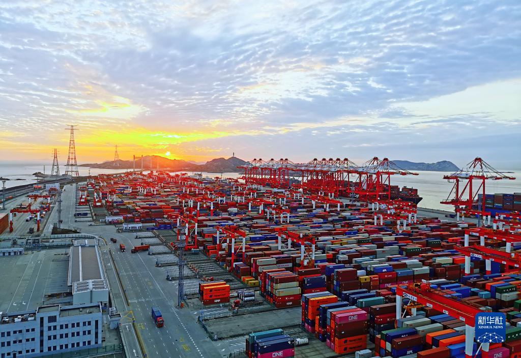 从高空俯视,洋山港正如一艘扬帆远航的巨轮向海而兴。上海正继续推动敞开共荣,打造世界航运中心“晋级版”。